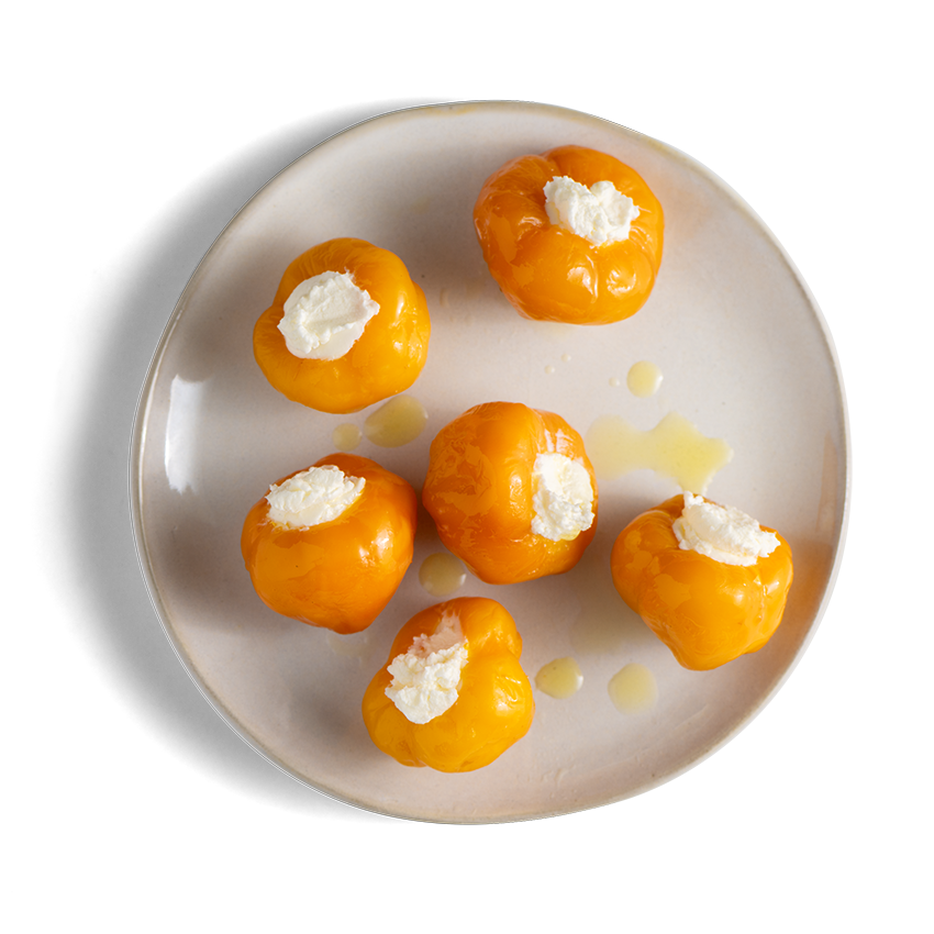 Süßlich-milde gelbe Kirschpaprika mit cremiger Füllung – farbenfroh und genussvoll.